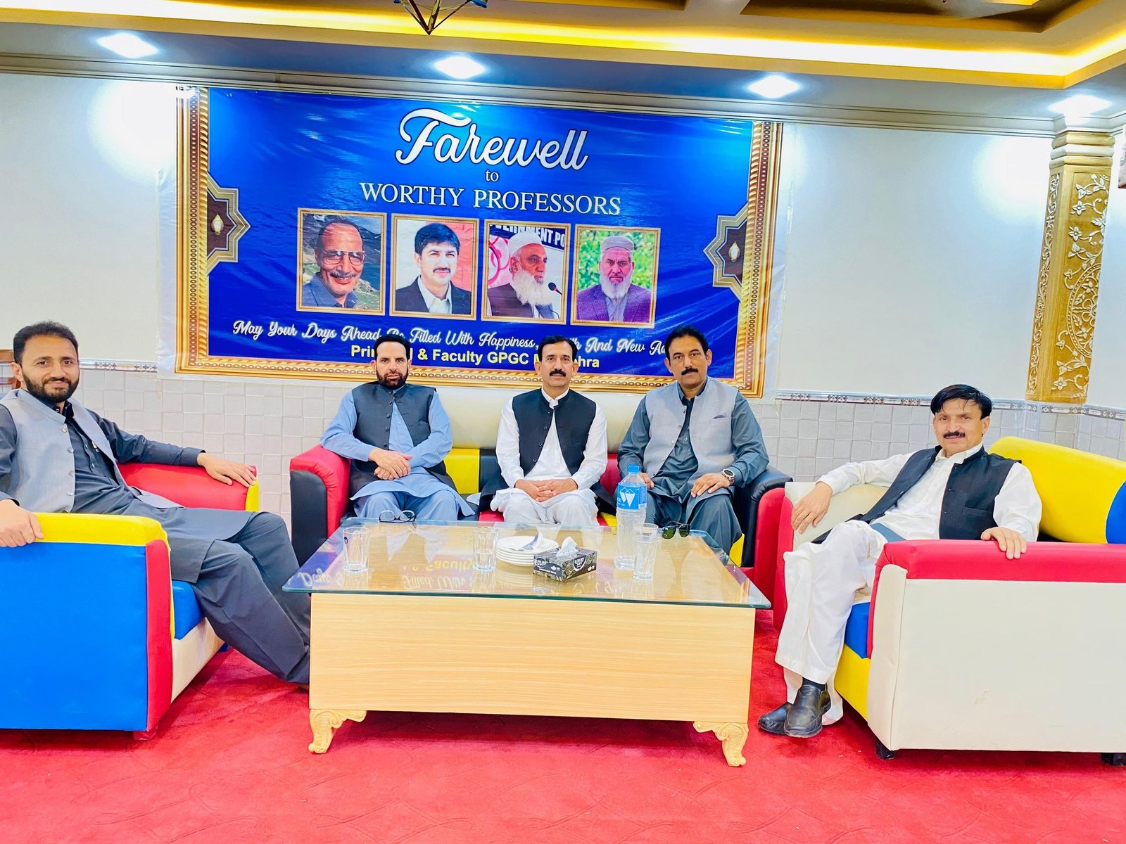 The teaching faculty of GPGC Mansehra organized a graceful and heartfelt farewell ceremony in honour of our recently retired professors: Prof. Saeed Ahmed, Prof. Naveed Akhtar, Prof. Shahid Iqbal, and Prof. Abdul Waheed.