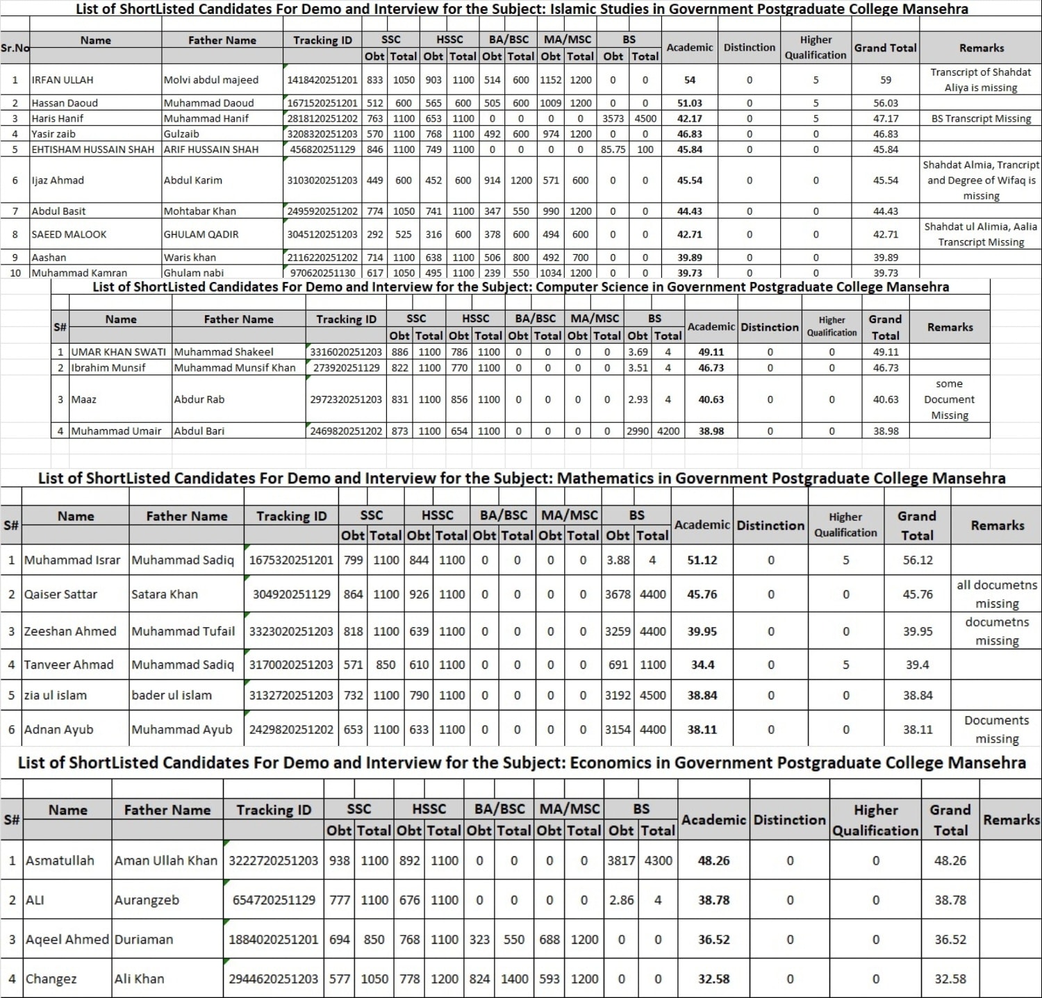 They are directed to appear before the interview panel on Monday, 15 December 2025 at 09:00 a.m, and bring their original documents.